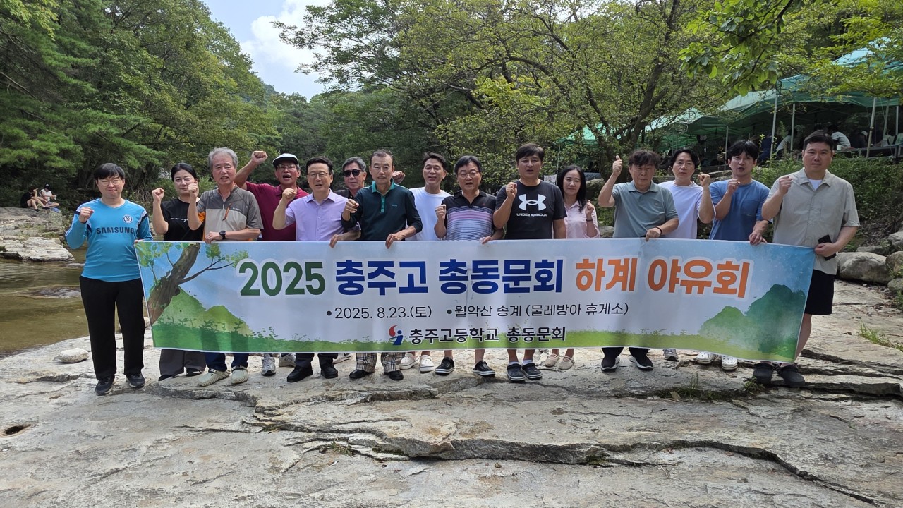 지난 2025년 8월 23일(토), 충주고등학교 총동문회 제18대 회장단과 사무국 및 동문가족 30여명이 참석하여 월악산 송계 계곡으로 야유회를 다녀왔다.