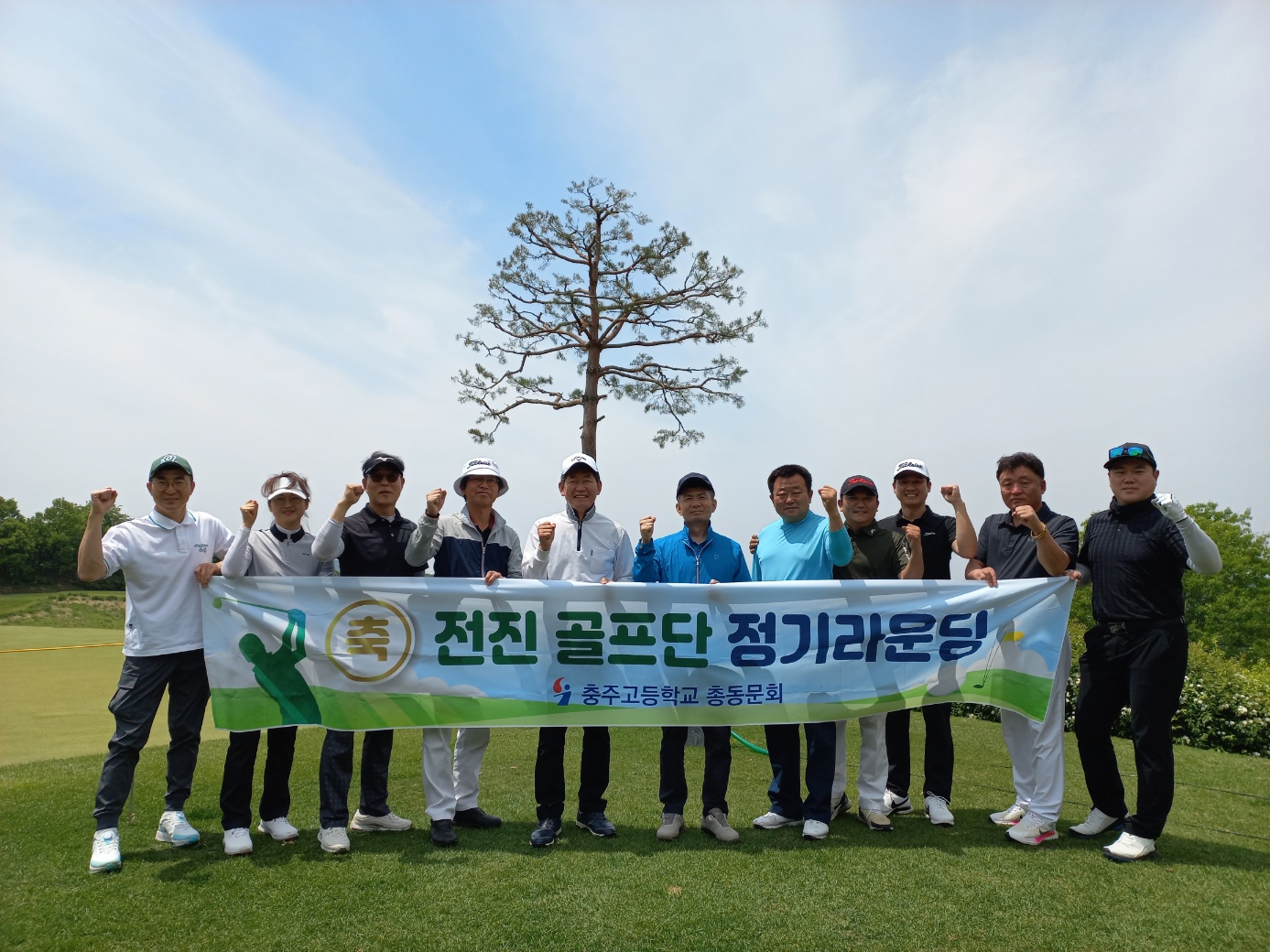 전진 골프단(단장 32회 정택용)은 충주고등학교 총동문회 임원진으로 구성된 단체로 임원들의 결속과 화합을 다지고자 지난 5월 10일(수) 레인보우힐스 C.C에서 12명이 참석한 가운데 3회 라운딩 진행하였다.
