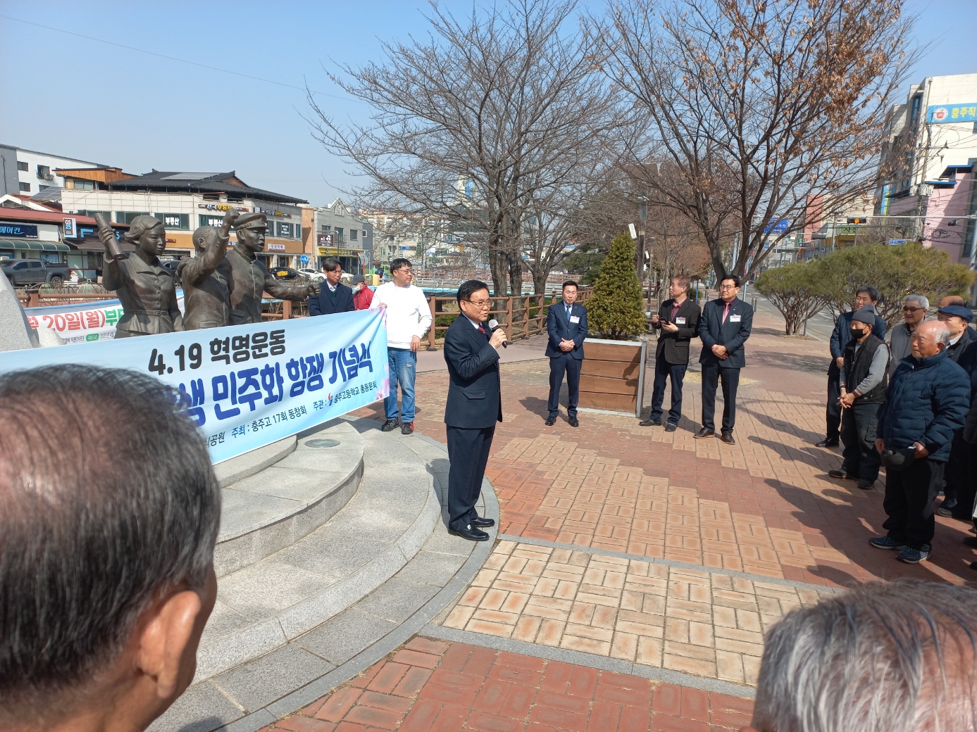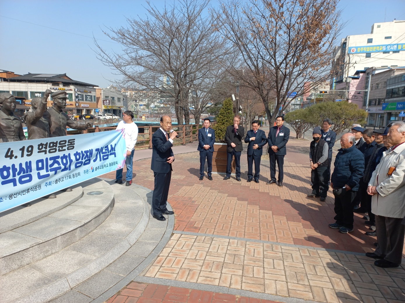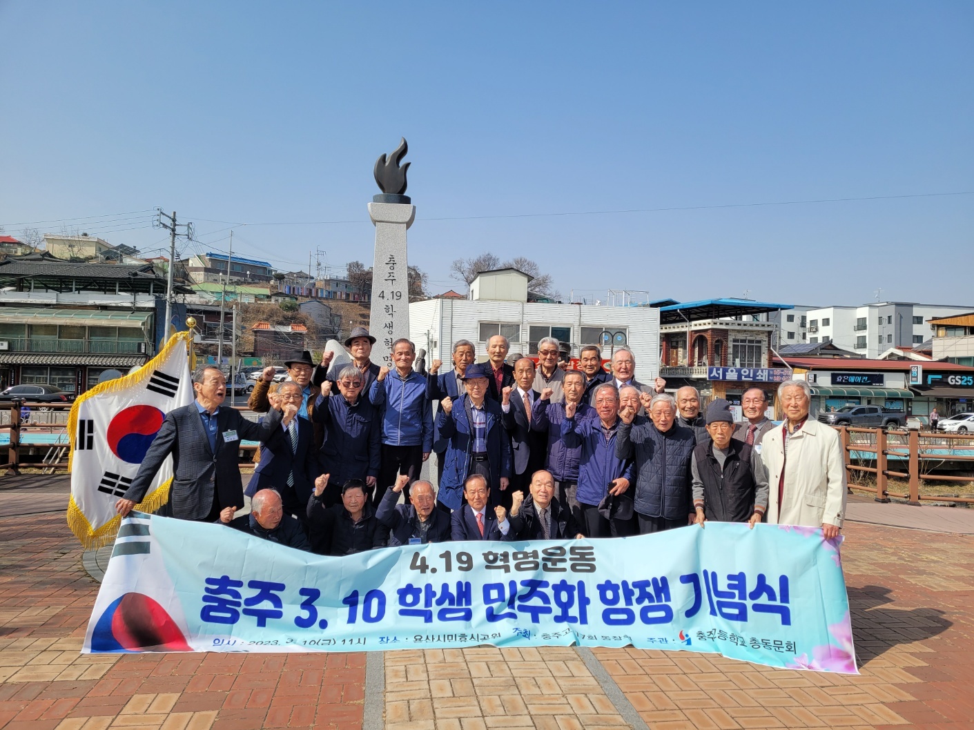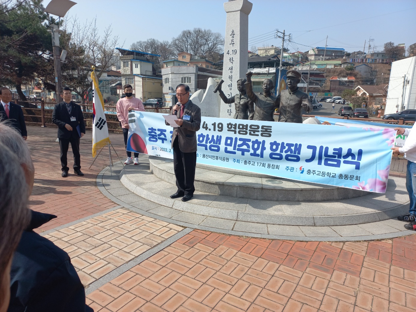 1960. 3.10 충북도내 최초 전국에서 3번째로 ’독재정권 타도’와 ‘민주화'를 외치며 시위에 나섰던 충주고 17회 동문님들의 4.19혁명 정신은 오늘날 대한민국이 자유 민주주의에 바탕을 두고 번영을 꽃피우는데 토대가 되었다.