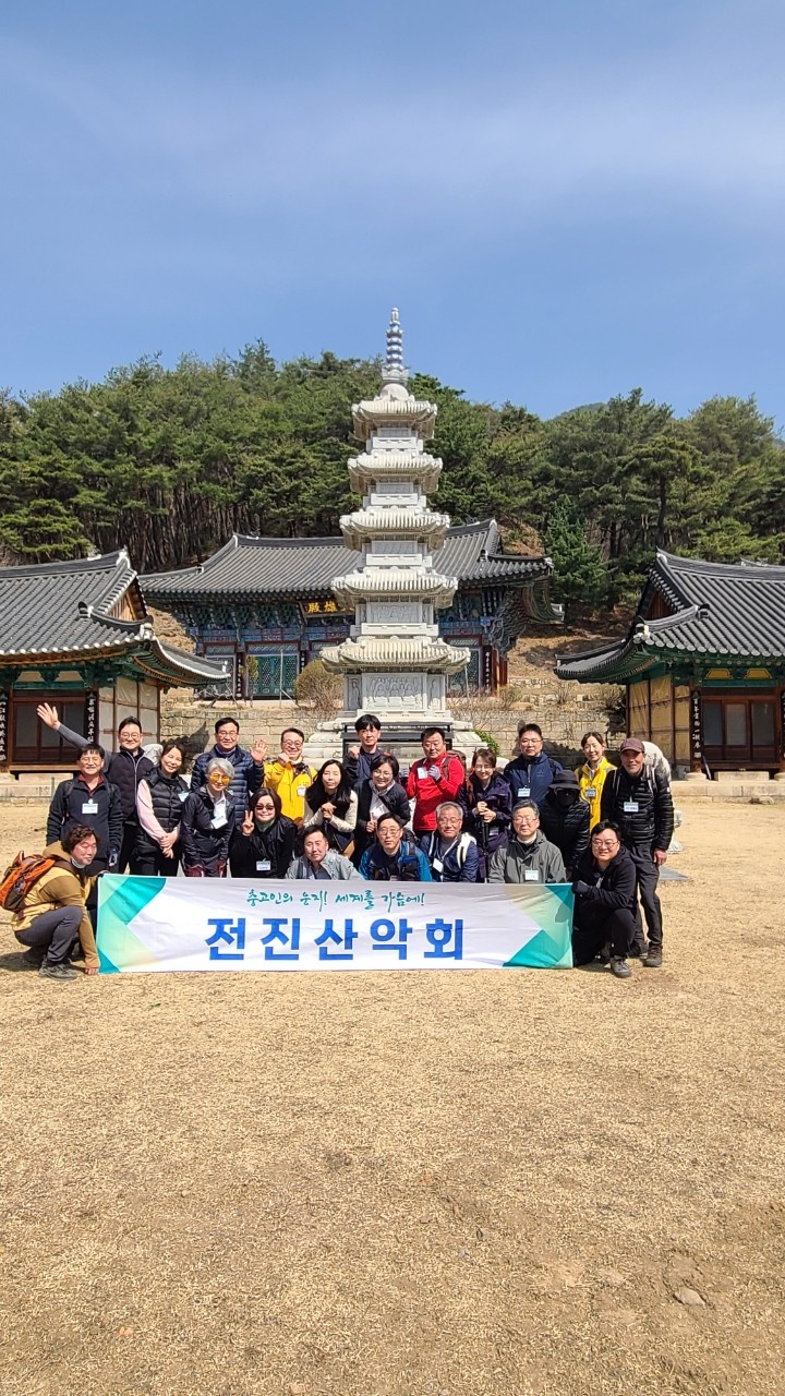 모든 생명이 약동하는 계절, 전진산악회(34회 박부규 단장)는 지난 3. 18(토) 동문 및 동문가족 약40여명이 참석한 가운데 화창한 날씨속에 4번째 '괴산 낙영산' 산행을 진행하였다. 이날 참석한 권대영 회장은 "전진산악회가 앞으로 많은 발전이 있기 위해서는 동문 및 동문가족분들의 적극적인 관심와 참여, 그리고 아낌없는 성원이 필요하며, 새로운 활력으로 화합과 신뢰의 산악회로 거듭 나서, 활발한 산악활동을 통하여 동문들의 결속과 화합이 배가되는 계기가 되길 기대해본다"고 말했다.